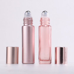 5ml 10ml Portable Pink Rose Gold Glass Roll Bead Bottle Muestra cosmética vacía Dividida con tapa de plástico para almacenamiento de cosméticos